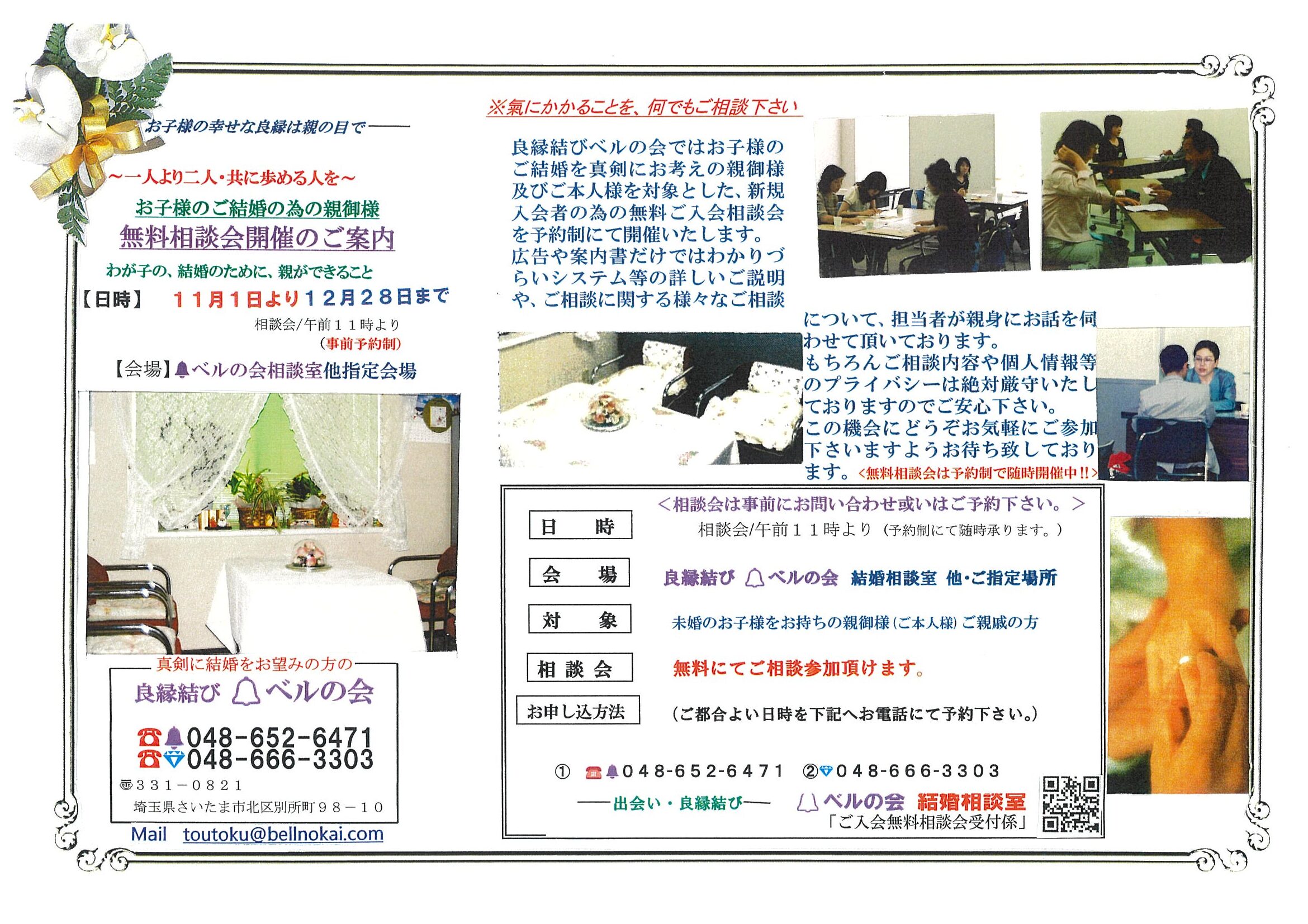 両縁結びベルの会ではお子様のご結婚を真剣にお考えの親御様及びご本人を対象とした、新規入会者のための無料ご入会相談会を随時開催いたします。
