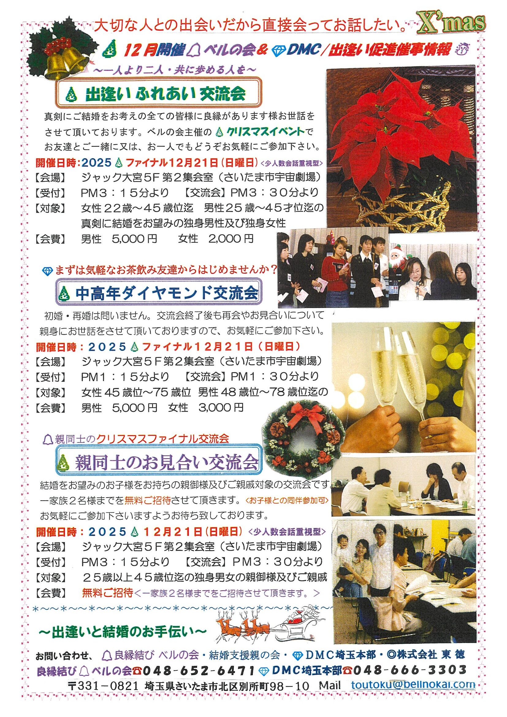 ベルの会&DMC埼玉 出逢い促進催事情報(2025年12月21日(日)開催)