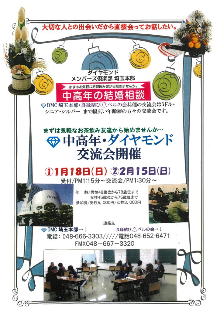中高年ダイヤモンド交流会 開催《2026年1月18日(日)・2月15日(日)》