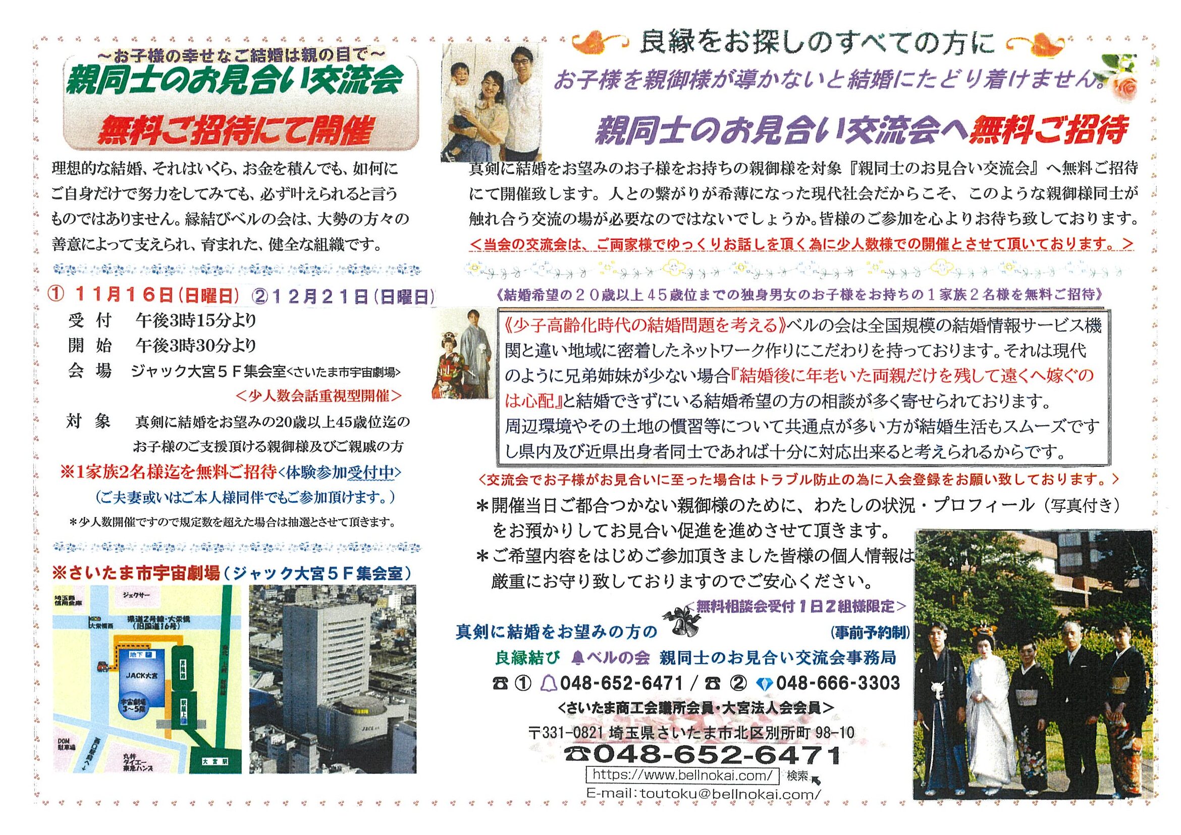 対 象 真剣に結婚をお望みの20歳以上45歳位迄の