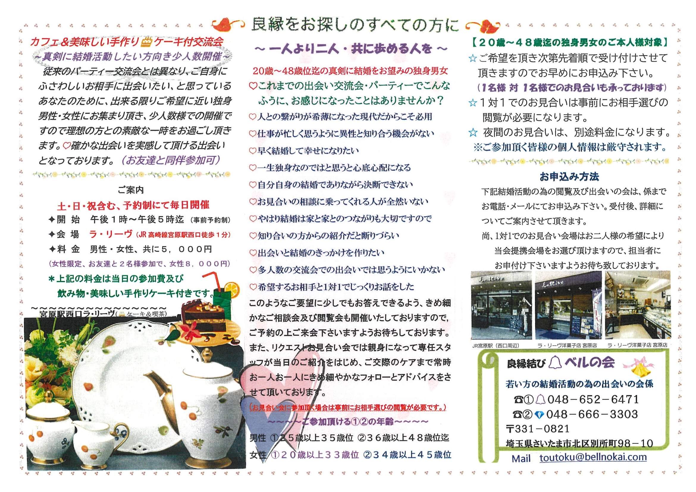【料金】男性・女性、 共に5,000円 (※女性限定、お友達と2名様参加で、2名8,000円)