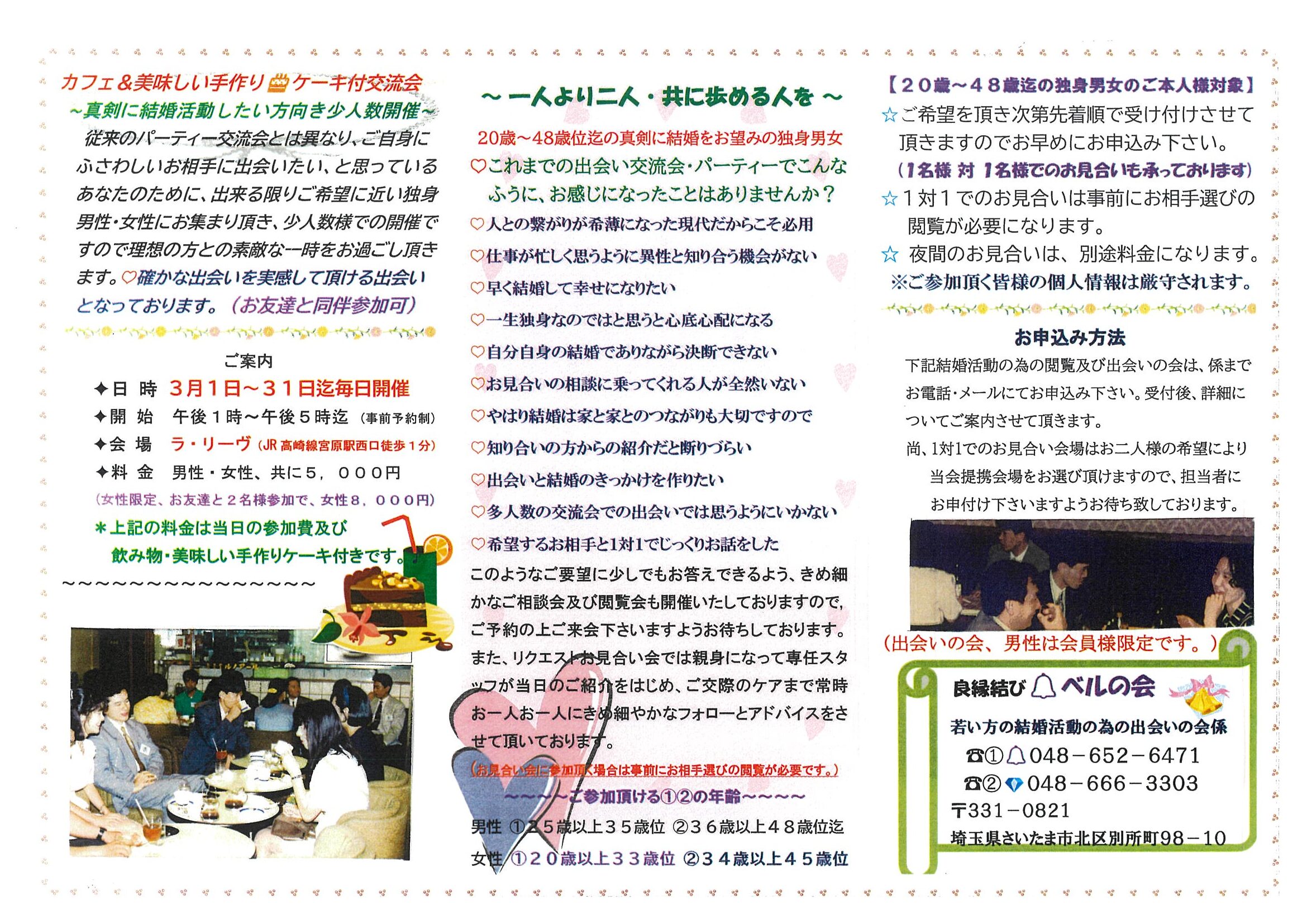 確かな出会いを実感して頂ける出会いとなっております。(お友達と同伴参加可)